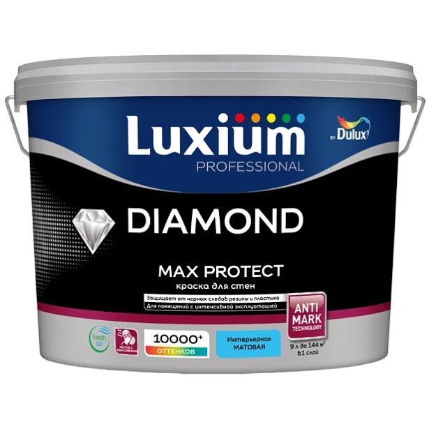 Краска Dulux (Дюлюкс) Professional Diamond Max Protect для стен и потолков матовая BW 9 л