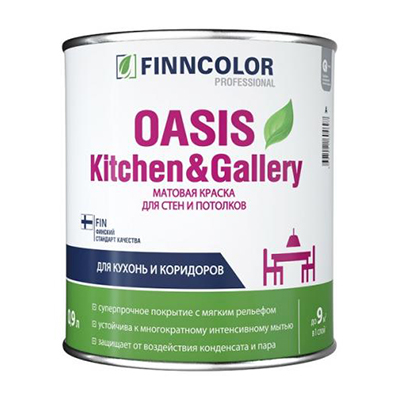 Краска Finncolor (Финнколор) Oasis Kitchen and Gallery для стен и потолков база A 0,9 л