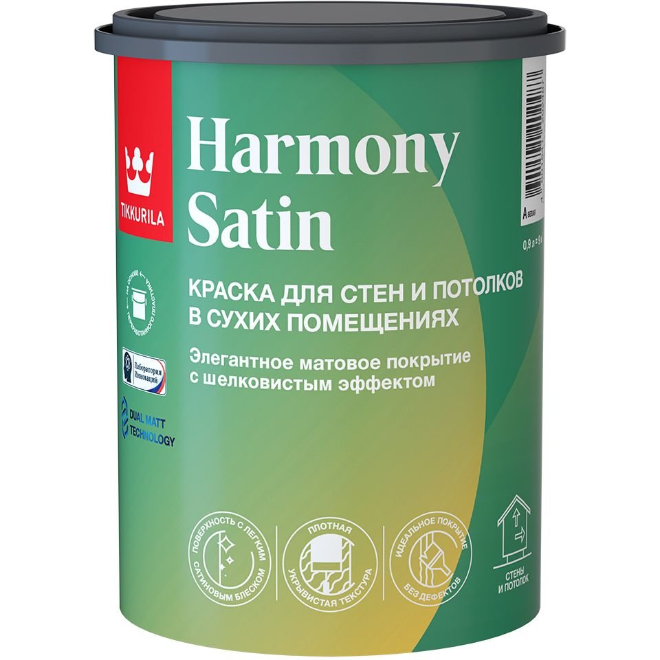 Краска интерьерная Tikkurila (Тиккурилла) /Tikkivala (Тиккурила/Тиккивала) Harmony Satin для стен и потолков в сухих помещениях матовая база A 0,9 л